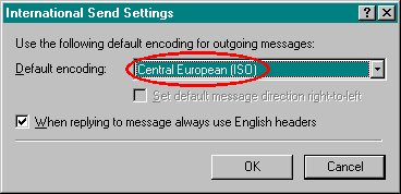 International Settings... (3) otvara novi dijalog u kojem postavimo Central European (ISO) kao Default encoding...