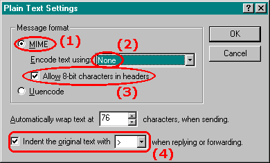 Plain Text Settings... (4) podesit ćemo kako slijedi...