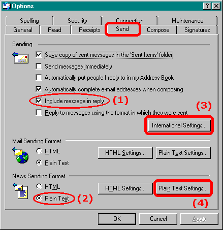 Plain Text (2) je obavezna postavka za News Sending Format, a preporučljiva je i za Mail Sending Format. Postanje HTML-a na Usenet grupe uvijek izaziva burno negodovanje, a ni promjenom boja i fontova u e-mail porukama nećete nikoga impresionirati.